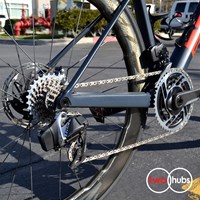 Proprietary, super-light thru-axle and sandwich derailleur hanger to reduce weight.