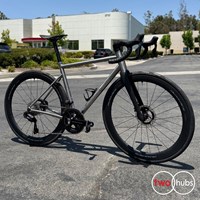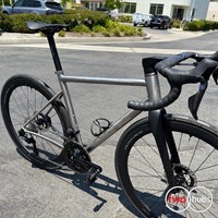 Premium 3/2.5 double-butted titanium tubing and dropped, slightly curved seatstays deliver a smooth yet snappy ride.