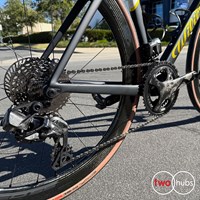 The inside of the front fork has been widened by 7 mm, making it 13.6% wider than the Cento10PRO. In doing so, we moved the fork blades away from the wheel, reducing turbulence and improving aerodynamics.